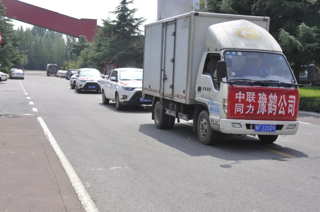 ▲豫鹤同力捐赠防汛物资到达浚县卸车