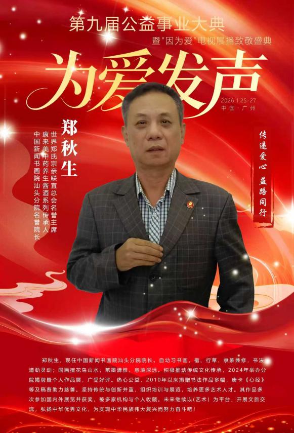 在郑秋生的身上,我们看到了一位当代艺术家对传统的坚守与对创新的追求,也看到了他对社会的责任与担当。他用笔墨书写人生,正如他所写的“笔写人间真善美,墨含艺海画诗书”,是他的初衷也是追求。用作品传递情感,用行动践行文化自信,为汕头乃至全国的书画艺术发展贡献着自己的力量。