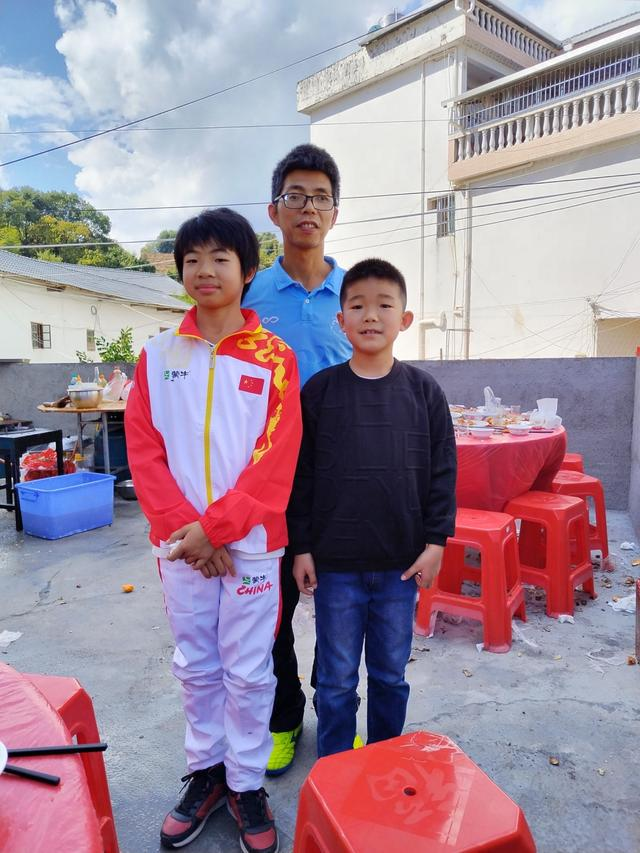 邱妧妧同学出征前与赖文亮老师合影