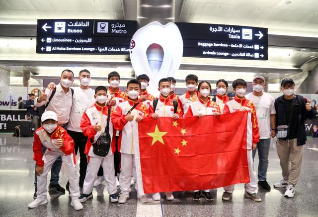 本次出征卡塔尔世界杯的11名青少年机场合影