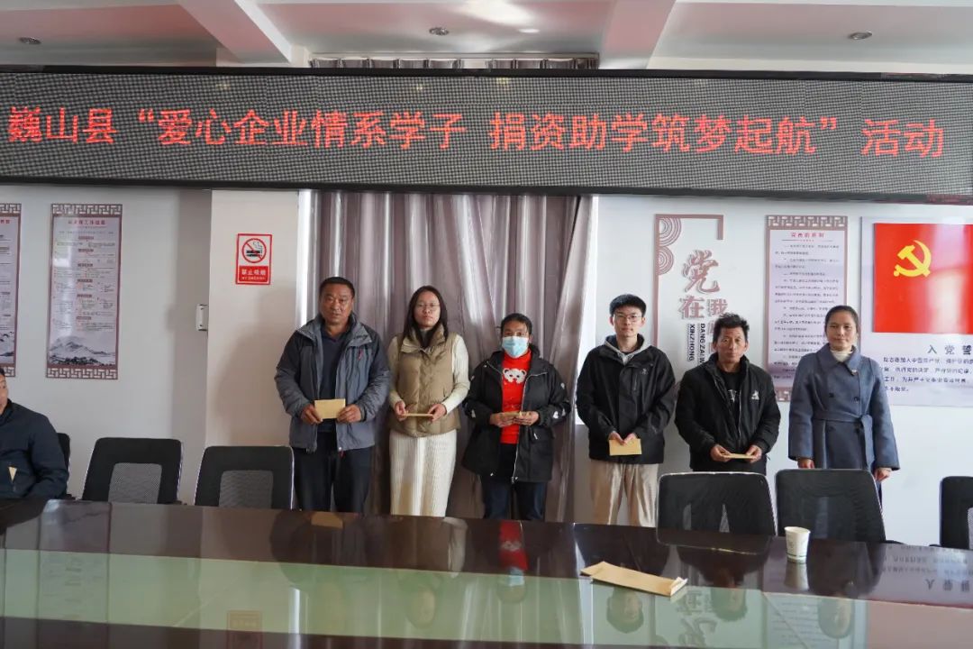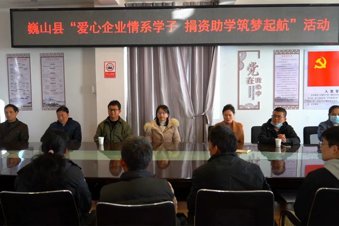 拳拳爱心点燃希望之光,片片真情托起明日朝阳。1月19日上午10时许,巍山县“爱心企业情系学子、捐资助学筑梦起航”活动在县卫生健康局二楼会议室举行。县卫生健康党工委、紫金乡党委、县卫生健康局驻民建村委会工作队、爱心企业相关负责人及授助学生、家长参加活动。